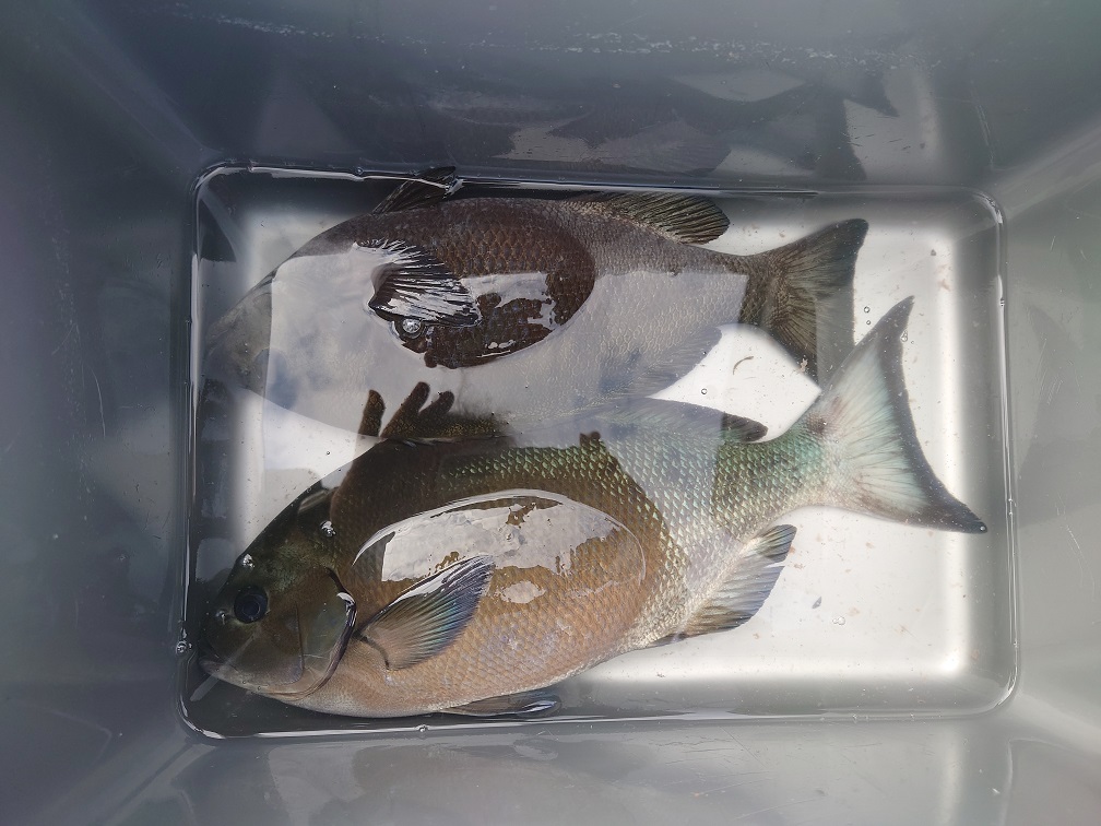 本日の竿頭はトンガリでこの時期としては珍しい良型のシマアジとメジナを釣られました川崎市の丸山様でした。(断トツの釣果でした)画像1