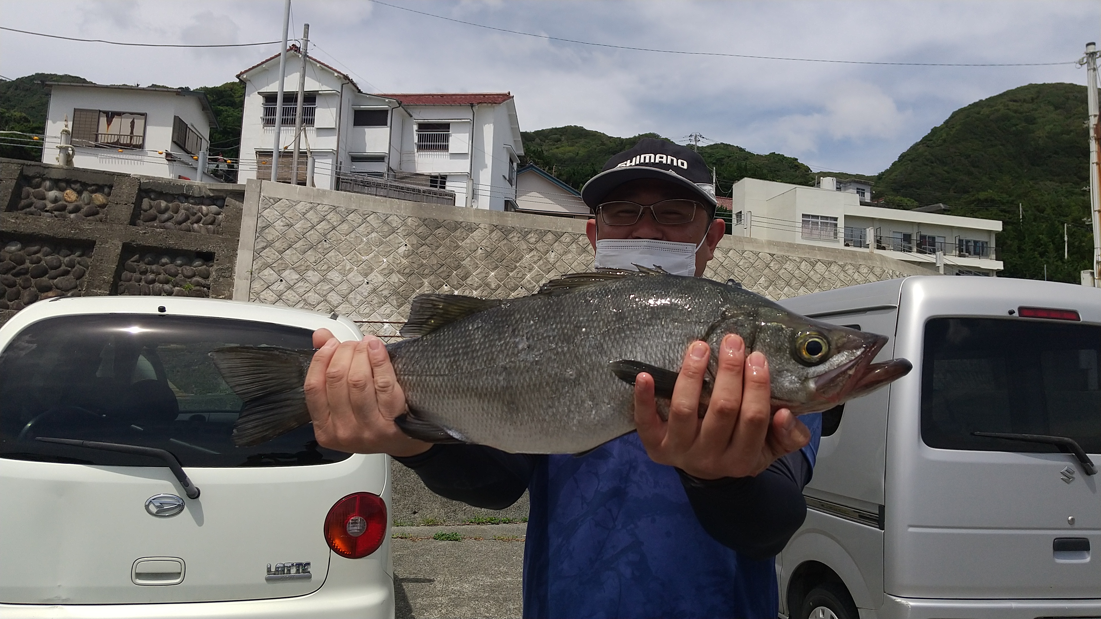平スズキはルアーの二投目でヒット! 土屋さまでした。