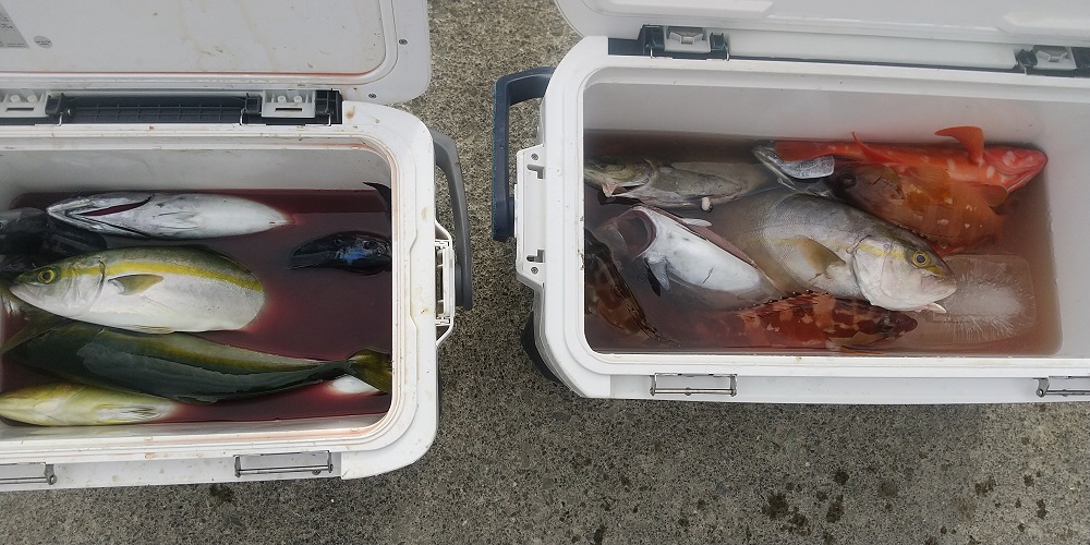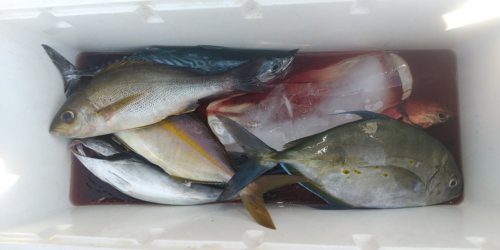 ともにカツオ等釣られましたが特にトーフでは伊藤様お二人がヤイト・ギンガメ・イサキ・アカハタ・アオリイカ3杯等、クーラーボックス一杯でした。(画像)