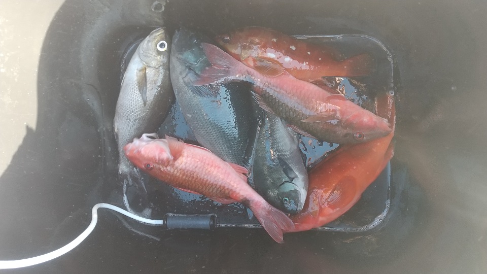 その中でもトーフでイシガキ4匹・マナイタでイサキ10匹・カゴオケでアカハタ10匹それぞれ釣られました。