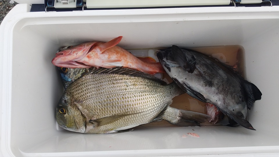 水温 17.5 度 薄濁り 凪 一時速い上り潮イシダイ 1,9kg 1匹 トンガリ 1人