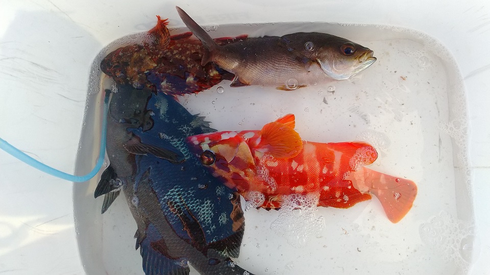 トーフは安孫子様。カゴオケは島村様。マナイタは小館様。赤島は西川様の釣果でした。