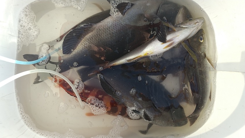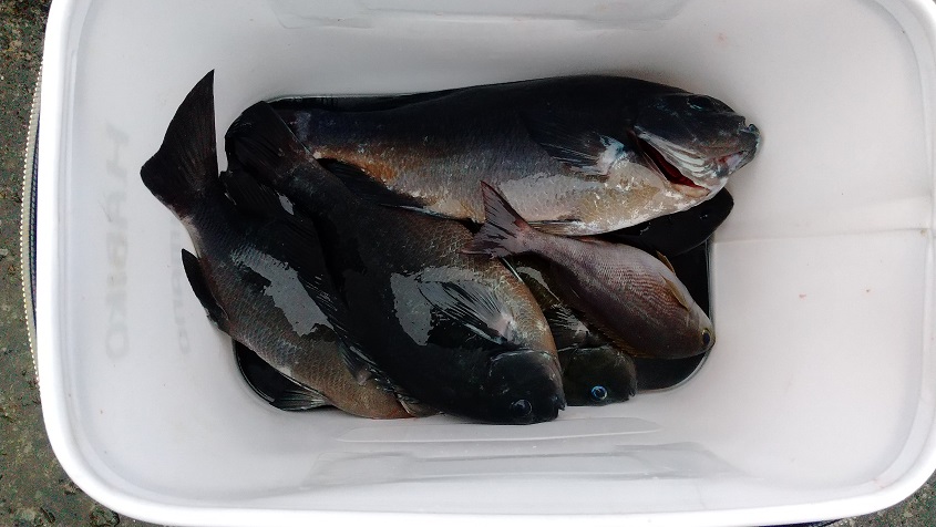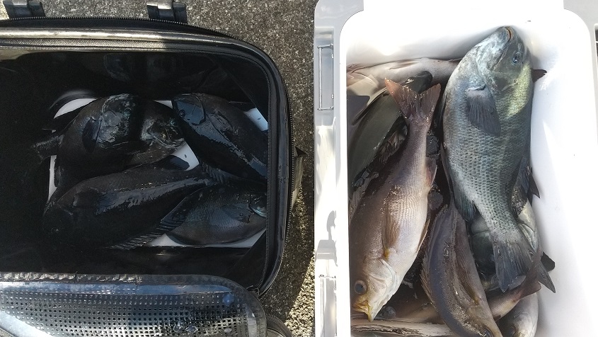 一見すると好釣果のようですが磯によっては活性が低くエサがそのまま残るポイントもありました。