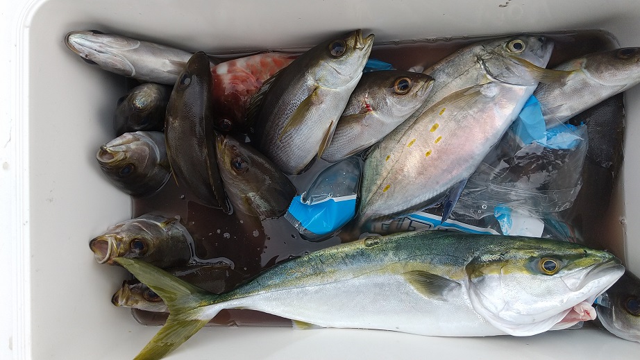 水温 23,2 度 澄み 速い下り潮イシガキ 0,8〜1,4kg 10匹 丸島 2人