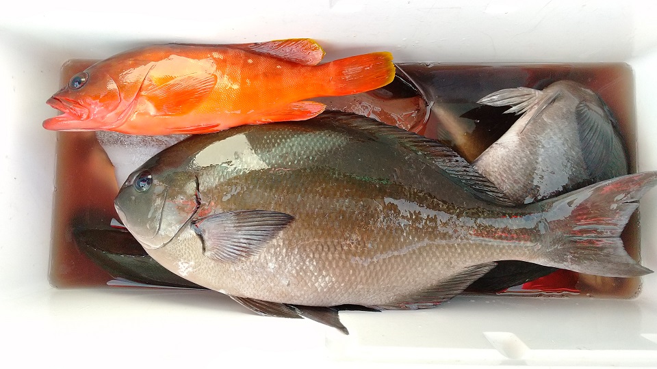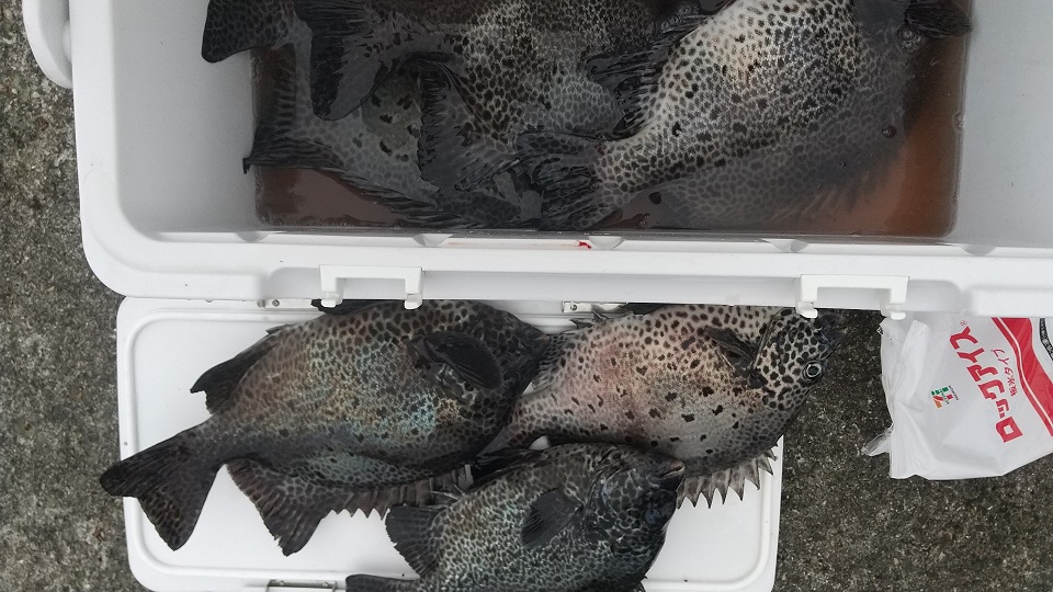 水温 24,4 度 澄み 凪 潮流れずイシガキ 0,7〜0,9kg 9匹 ササラ 2人
