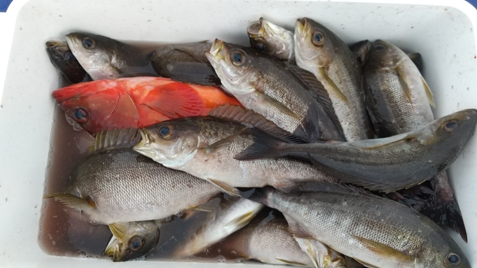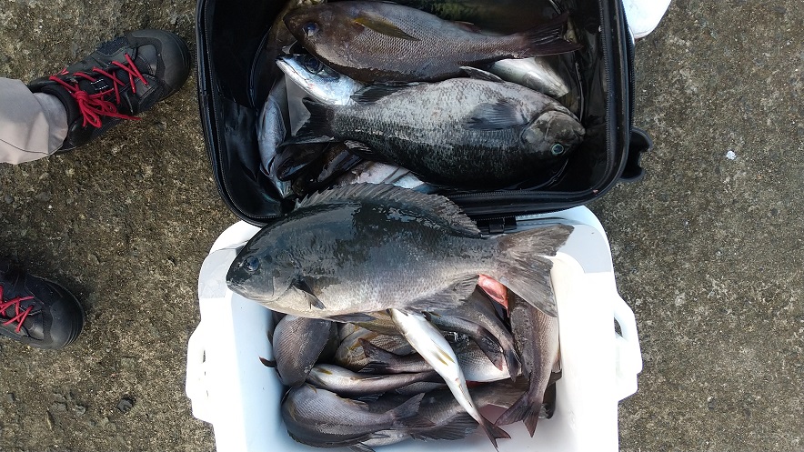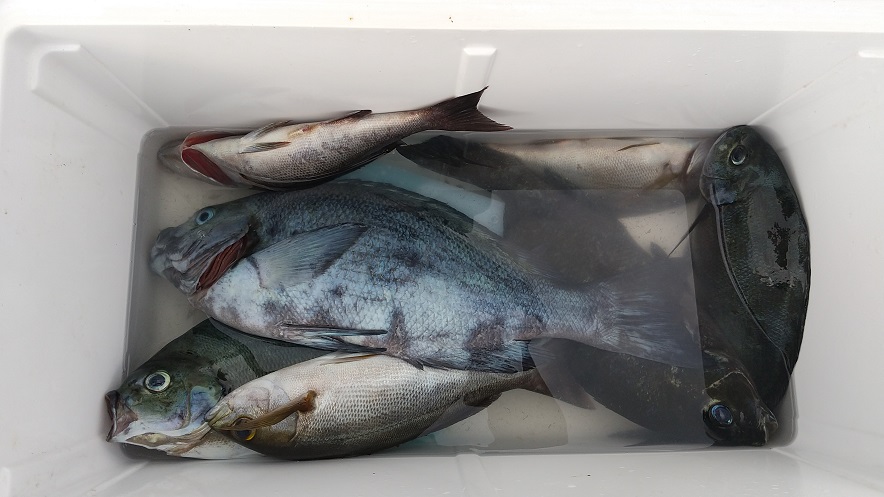 連日、コマセが入っているためイスズミが多くなりました。稲川さまの釣果でした。