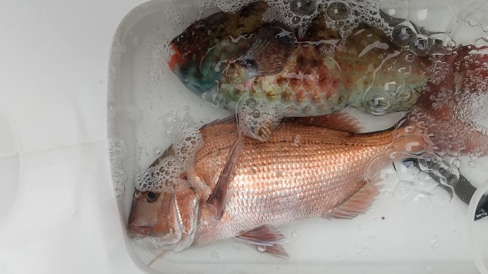 画像はマナイタとハズレドコそれぞれのマダイと丸島の黒鯛です。