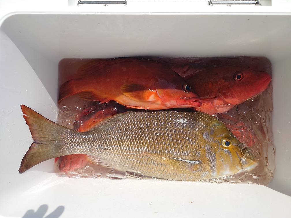 水温 25,4 度 薄濁り やや波あり 潮流れずシブダイ 44〜50cm 3匹 ササラ 2人