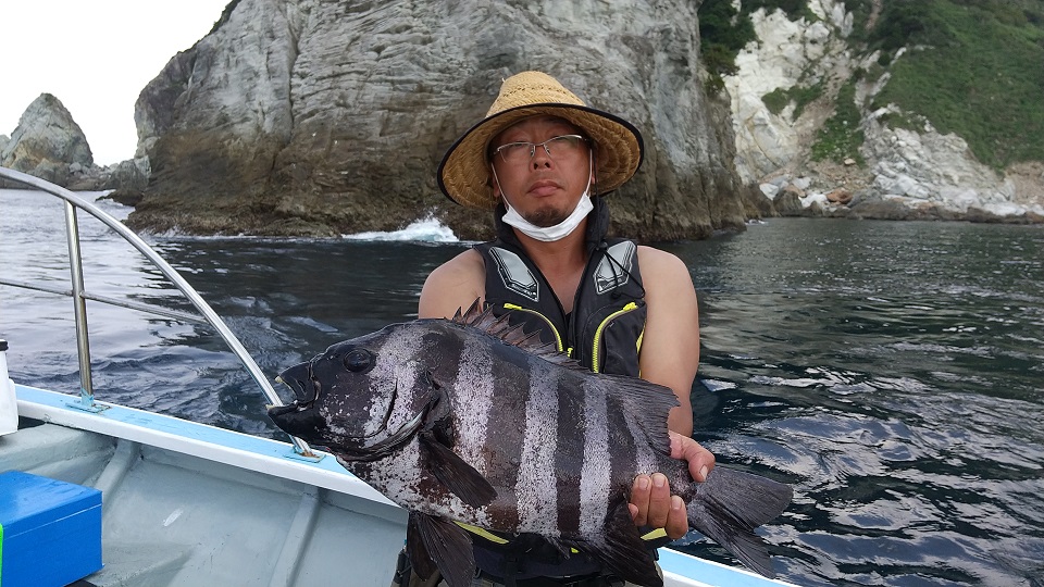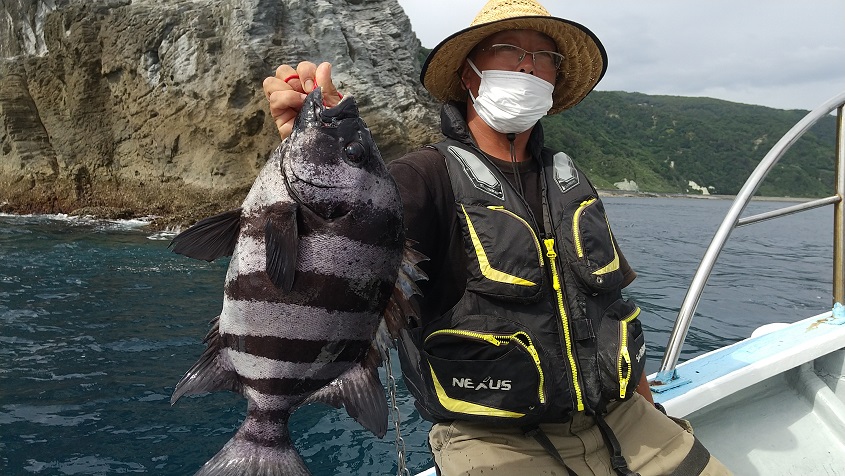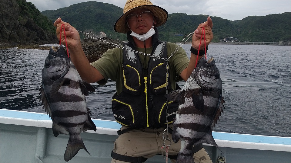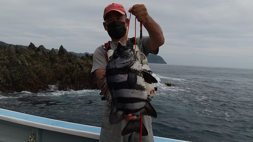 波勝島のイシダイは7時半にヒット! えさはサザエで、山内さまでした。