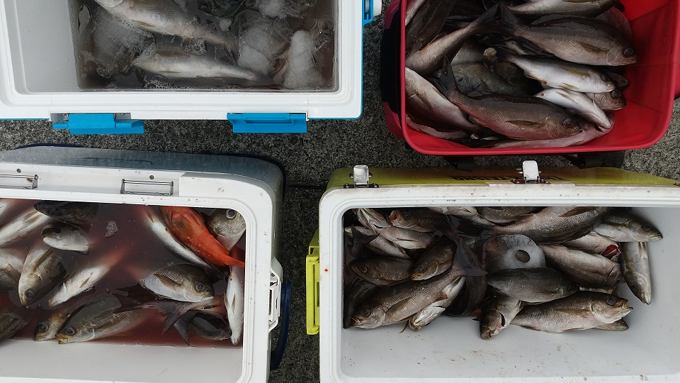 昨夜の釣果です。イサキ 20〜29cm 50匹 ハラモ 1人
