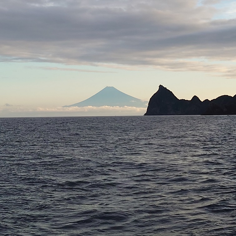 日曜・海の日ともに5時に出船します。画像2は15時の船体越しの富士山です。