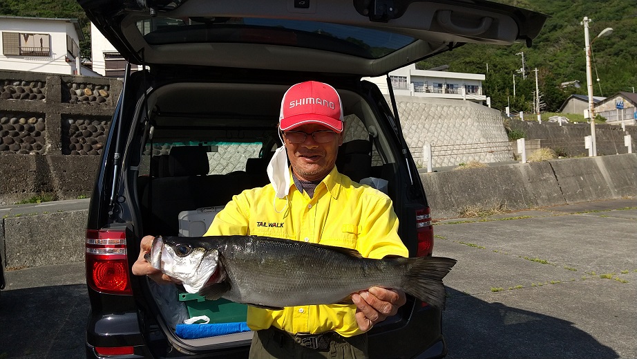 水温 20.6 度 濁り 朝方やや波あり 潮流れず平スズキ 1,3kg 1匹 黒島 2人