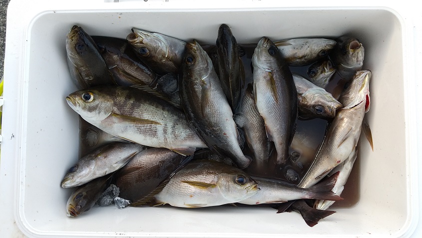水温 20,4 度 濁り 凪 潮流れずイサキ 20〜30cm 50匹 立島 前夜1人