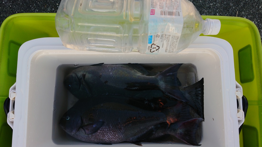 水温 17,3 度 澄み 凪 潮流れずメジナ 28〜37cm 8匹 マナイタ 1人