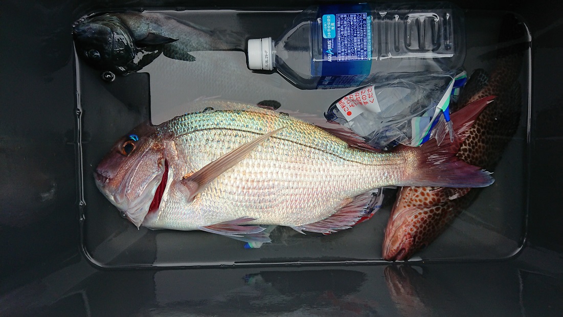 水温 19,0 度 澄み ややウネリ 潮流れずマダイ 1,5kg 1匹 ハズレドコ 1人