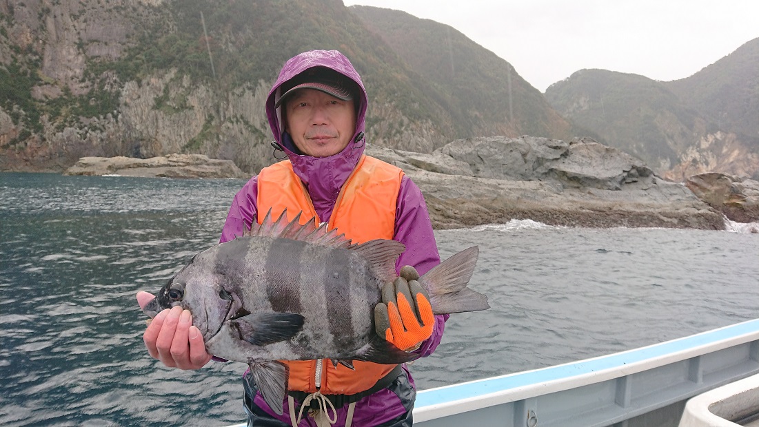 水温 21,0 度 澄み 凪 上り〜下り潮イシダイ 2,4kg 1匹 黒島 2人