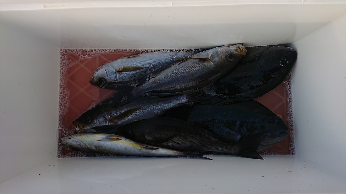 水温 23,6 度 澄み 凪 下り潮イシガキ 0,4〜1,0kg 5匹 黒島 1人