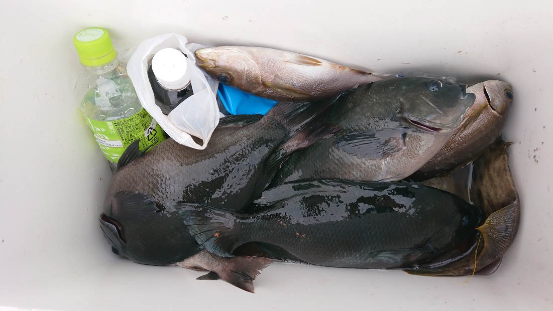 水温 23,5 度 澄み 凪 速い上り潮ブダイ 32〜45cm 28匹 ササラ 2人