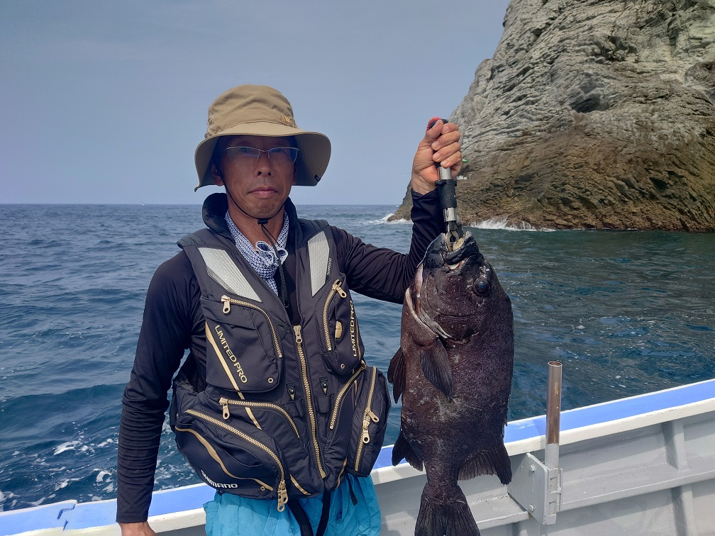 ハサミのジャンボイサキはルアーで沼津市の白土様の釣果でした。小型アカハタは全てリリースして頂きました。