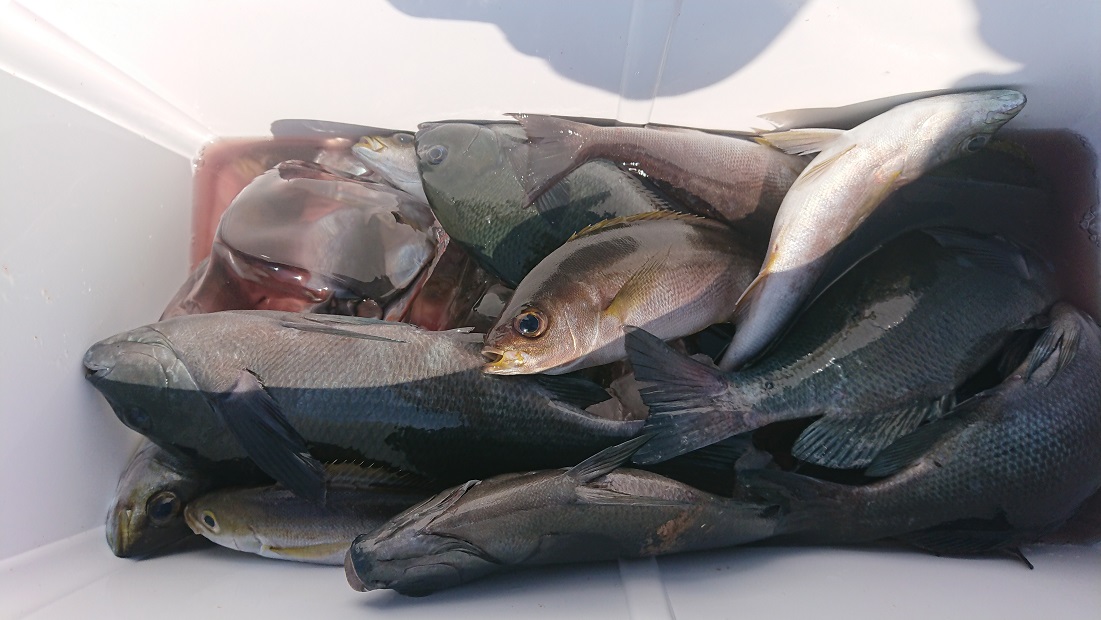 水温 26,2 度 澄み 凪 上り潮イシガキ 0,5〜0,7kg 5匹 ササラ 1人