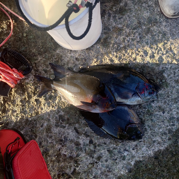 水温 15,8 度 澄み 凪 潮流れずメジナ 30〜40cm 5匹 カゴオケ 1人