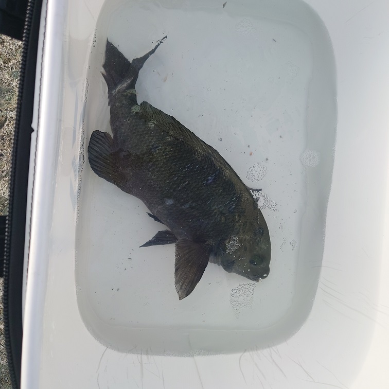 水温 21,9 度 薄濁り 凪 潮流れずメジナ 35cm 2匹 外ハラモ 1人